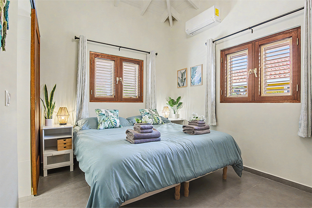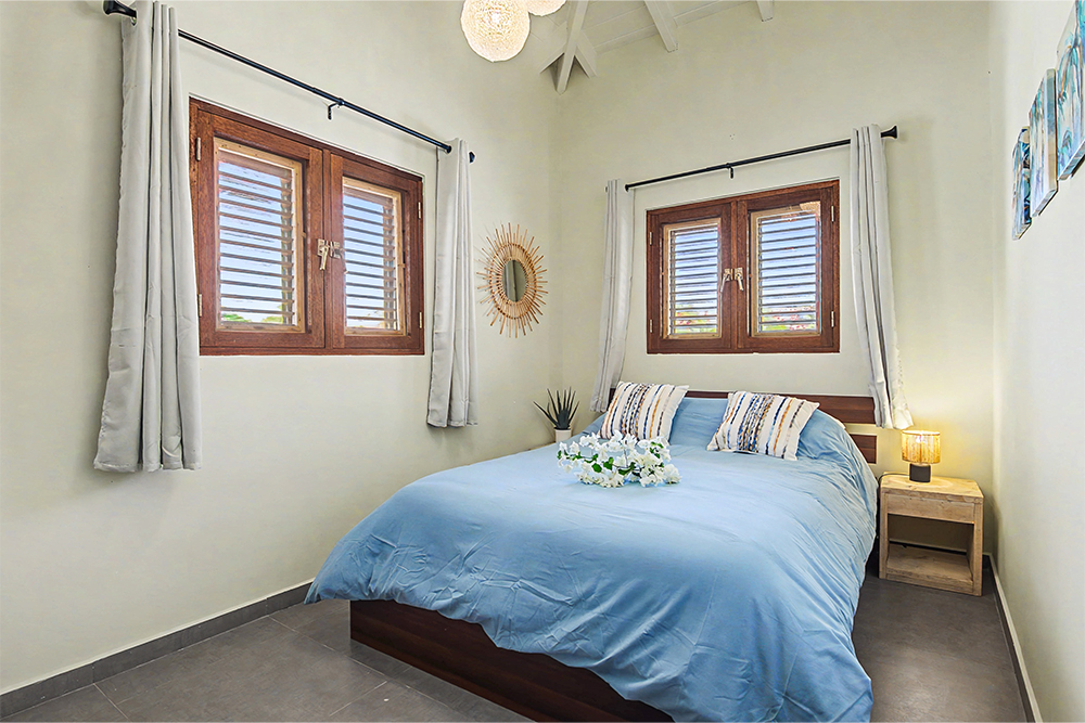 De houten shutters zorgen voor een heerlijke natuurlijke ventilatie en geven de woning die typische Curaçaose uitstraling.