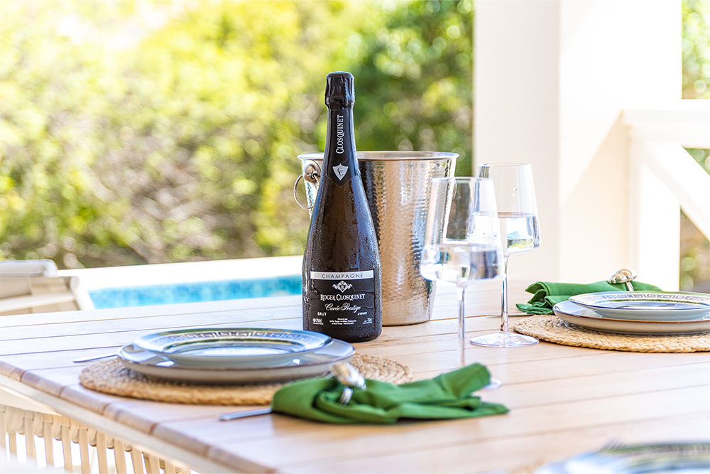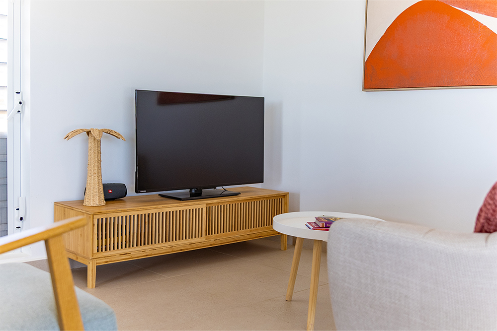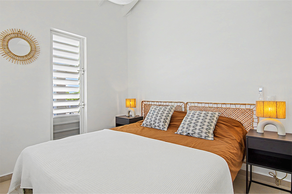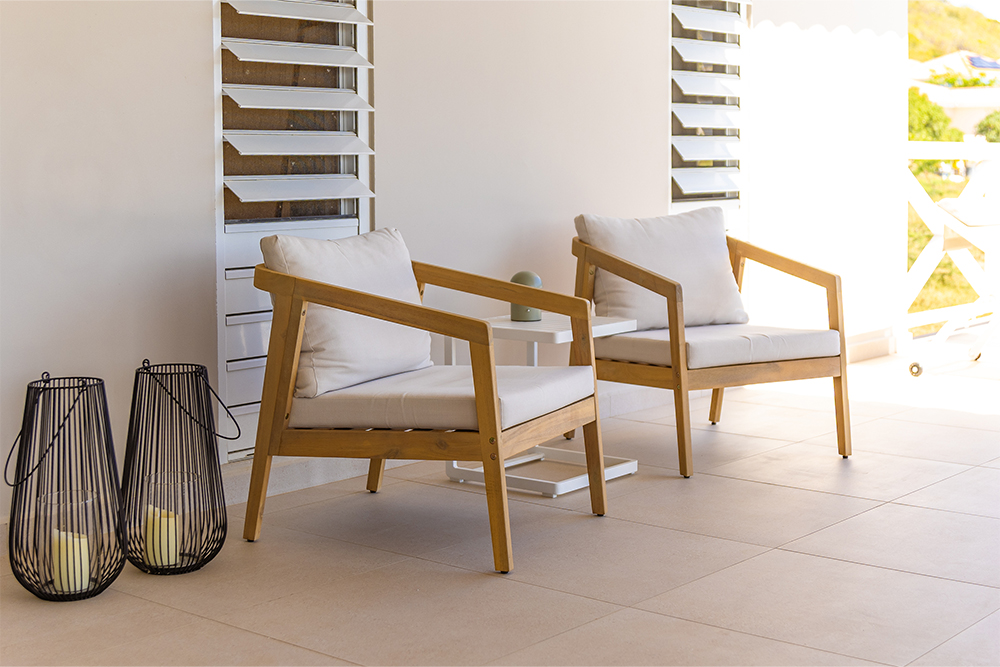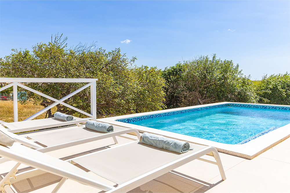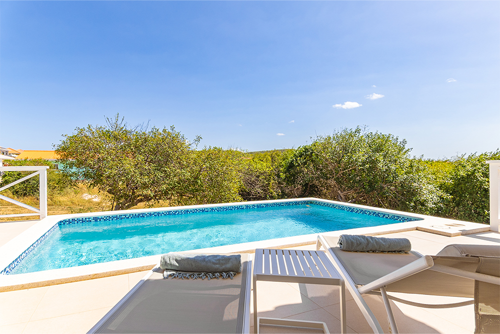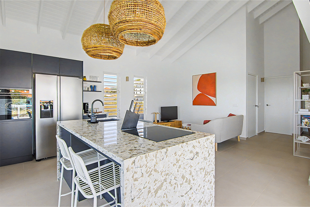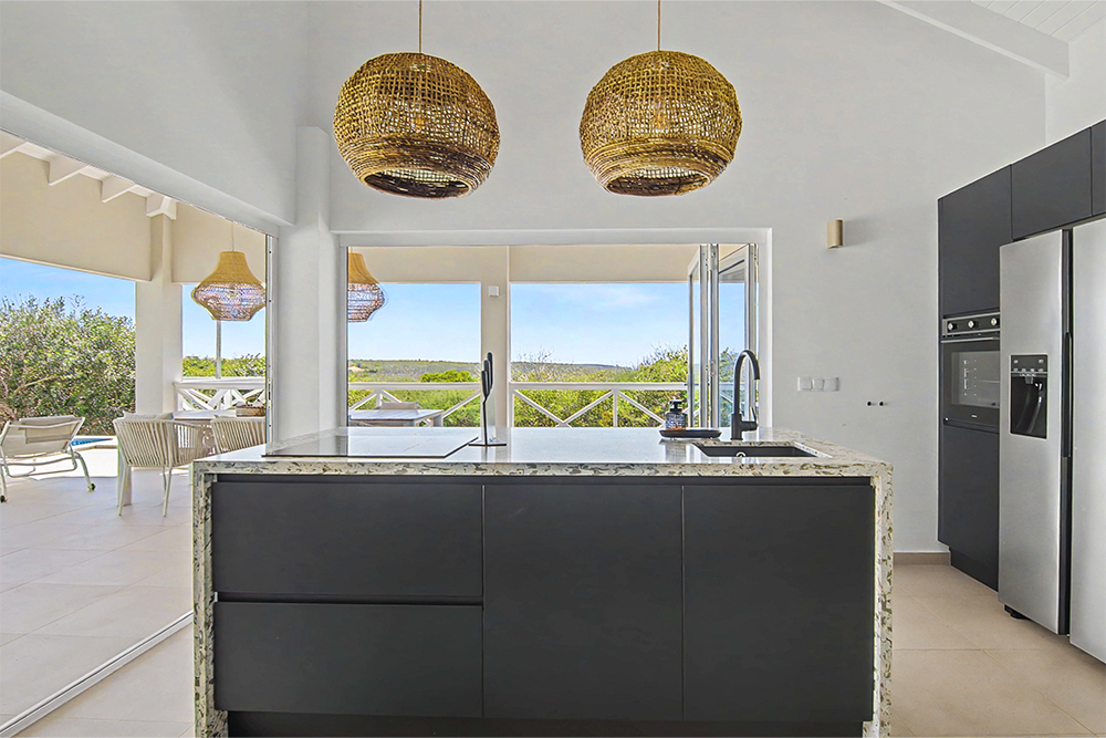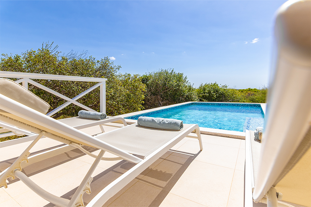 Via de grote schuifpuien loopt u zo naar het royale, overdekte terras met lounge- en eethoek. Geniet van de verkoelende passaatwind, het tropische uitzicht en het ultieme vakantiegevoel. Het privézwembad maakt het plaatje compleet — ideaal voor een verfrissende duik op elk moment van de dag.