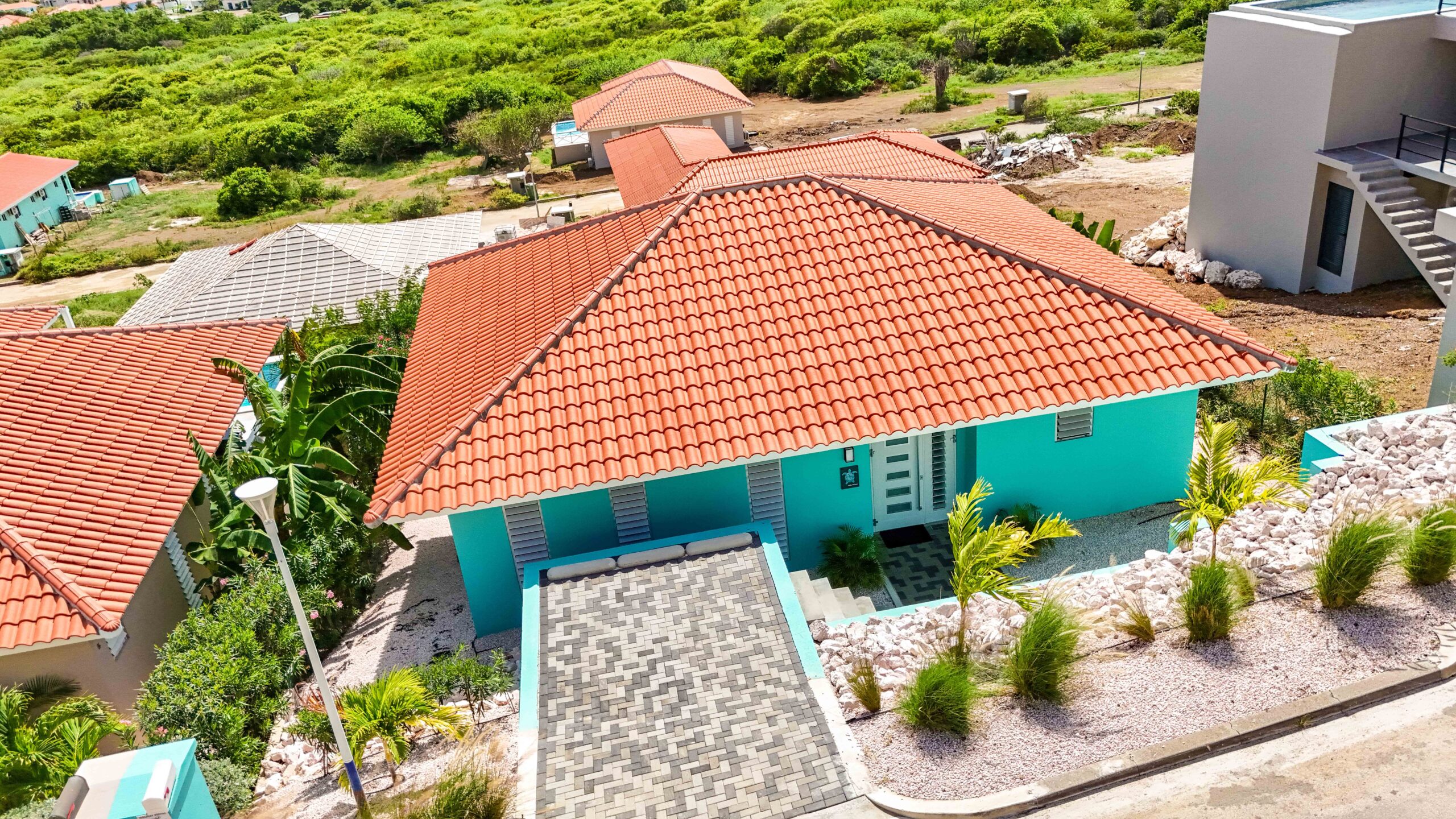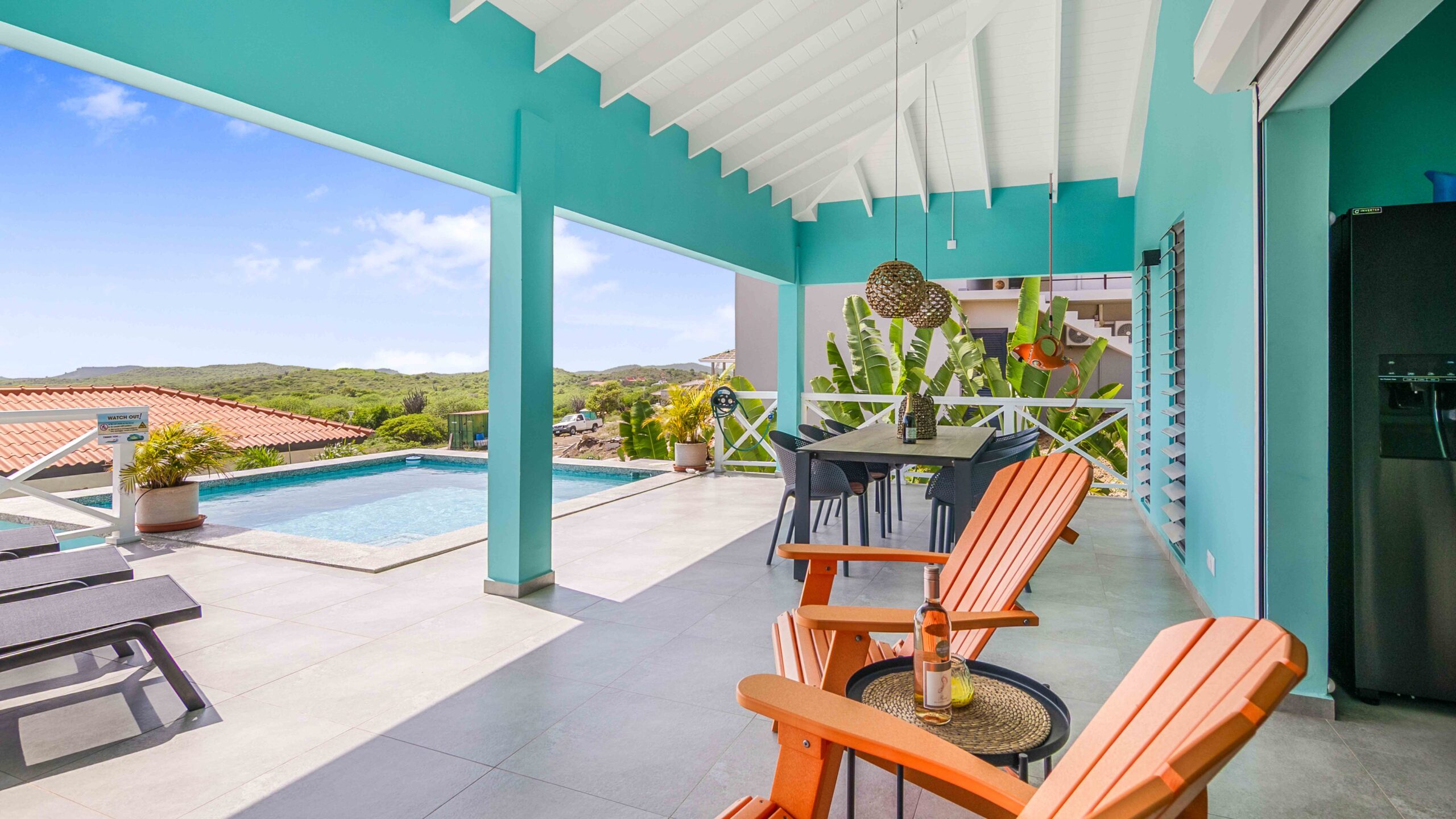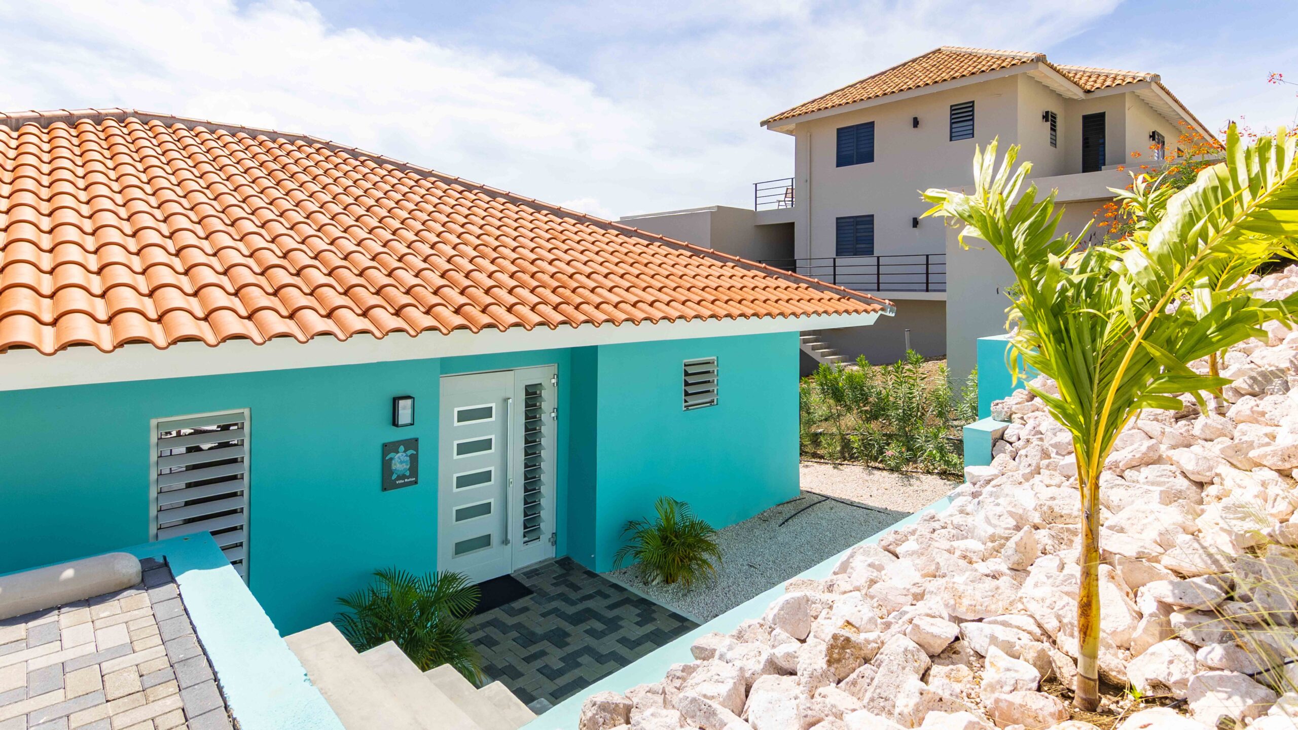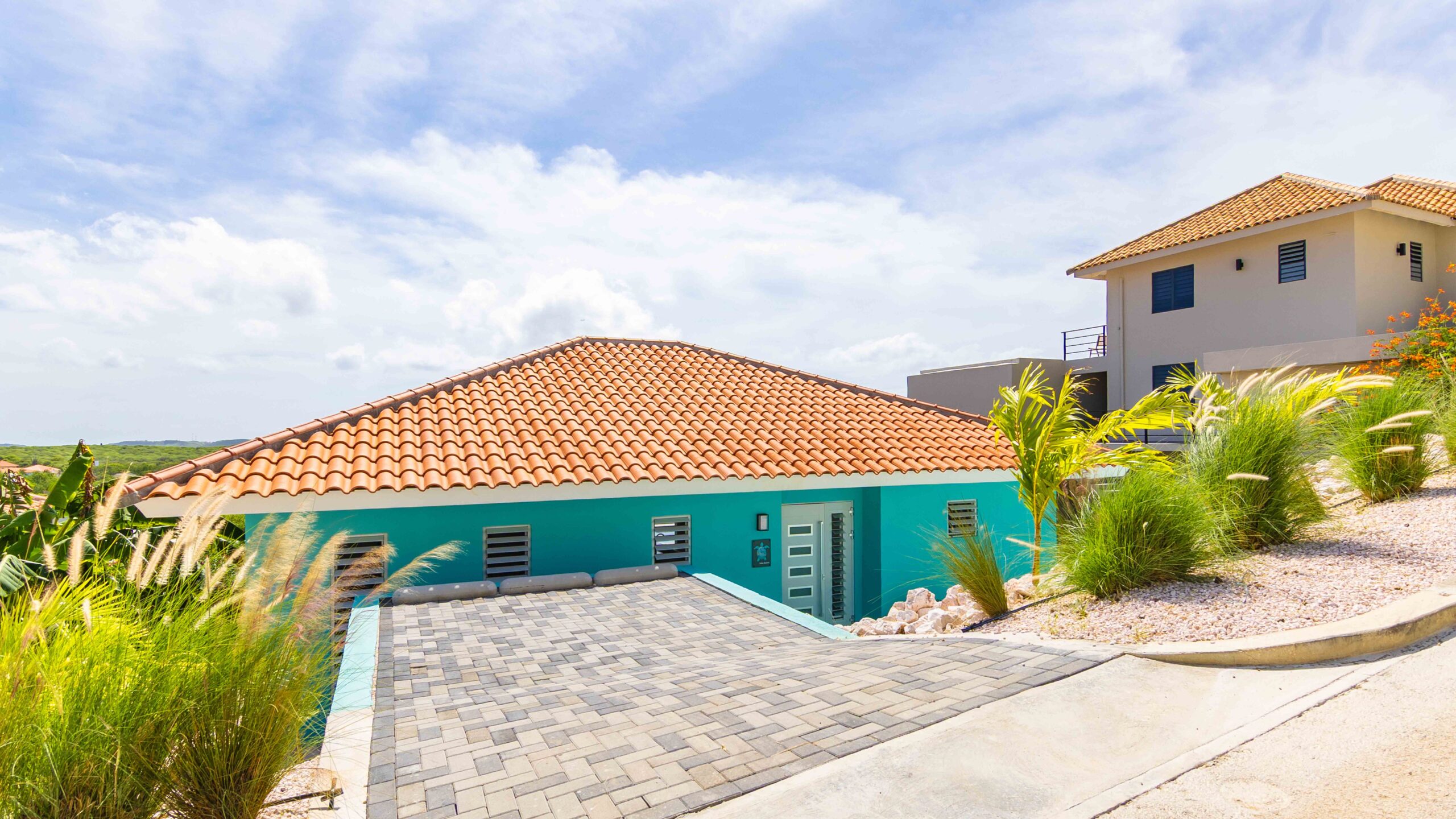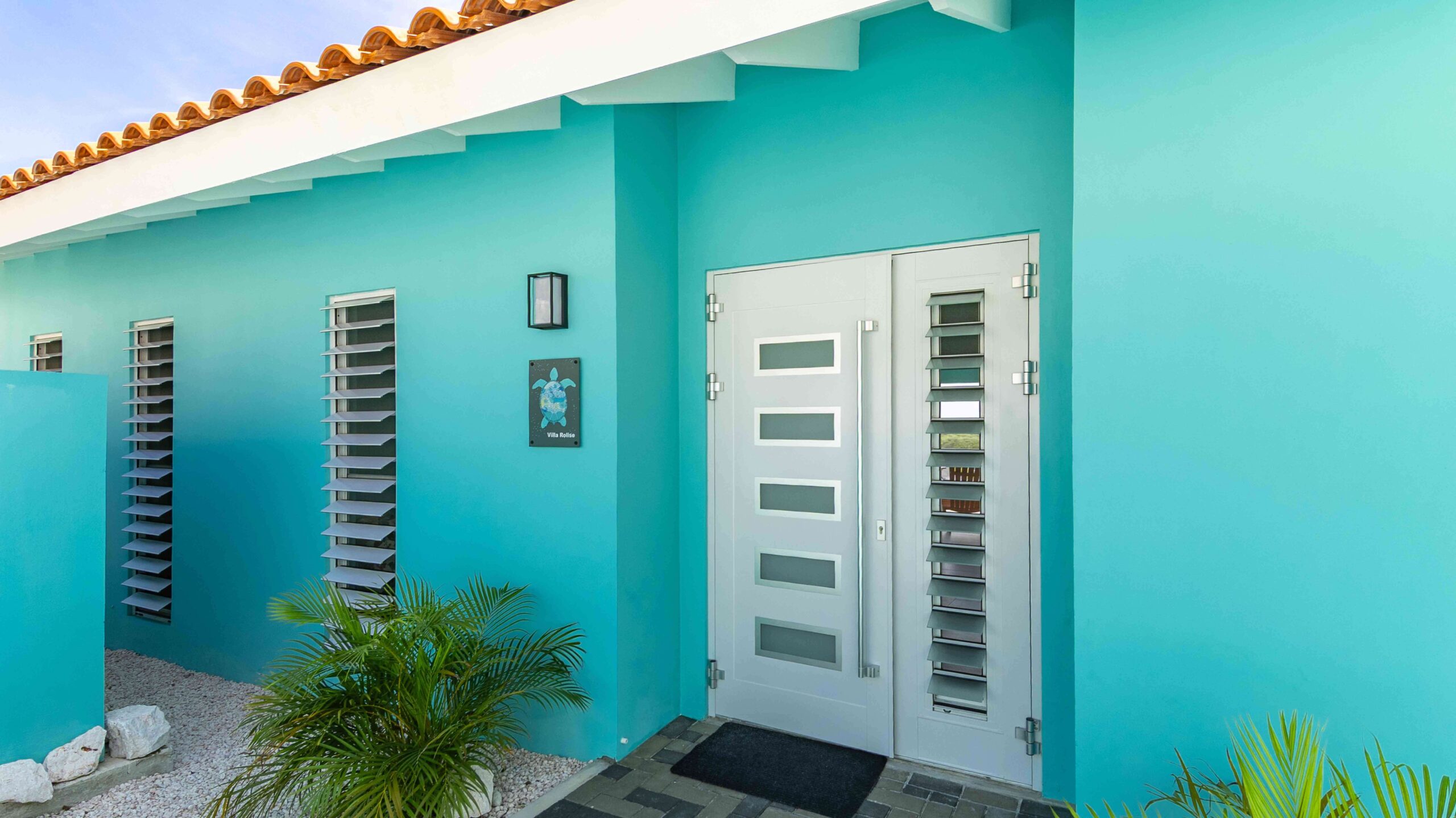 Deze luxe vakantiewoning, geschilderd in een frisse turquoise tint, biedt een onvergetelijk verblijf voor iedereen die wil genieten van comfort, natuur en de charme van het Caribische eiland Curaçao.