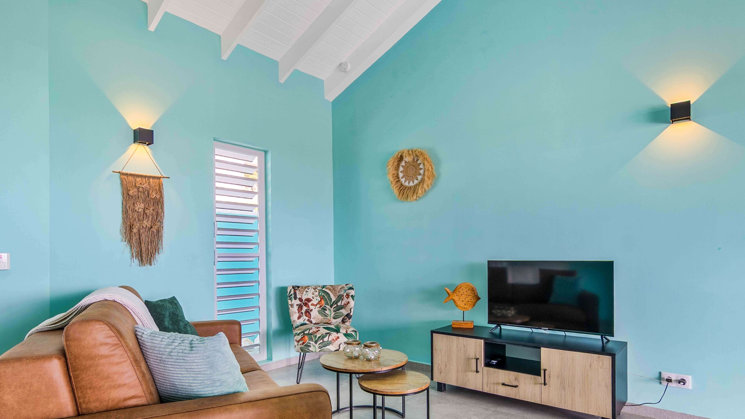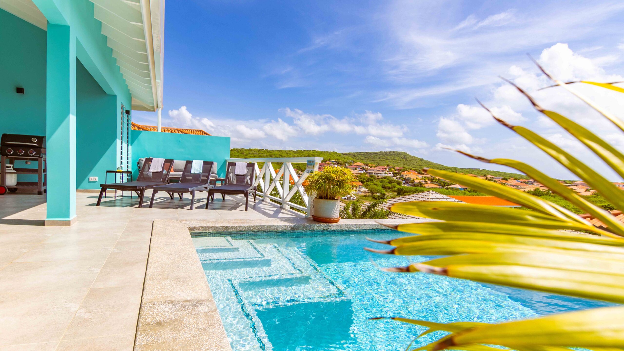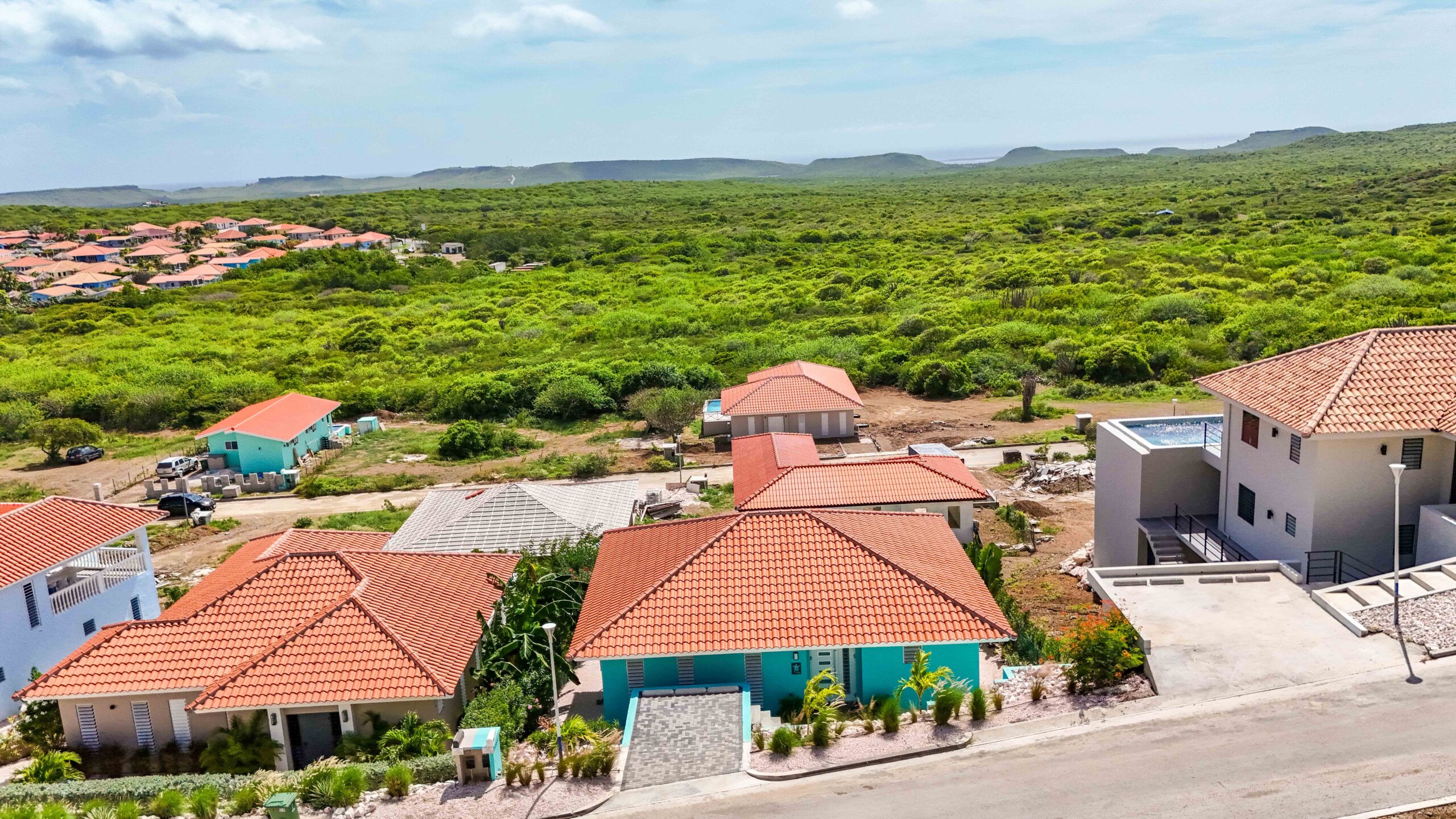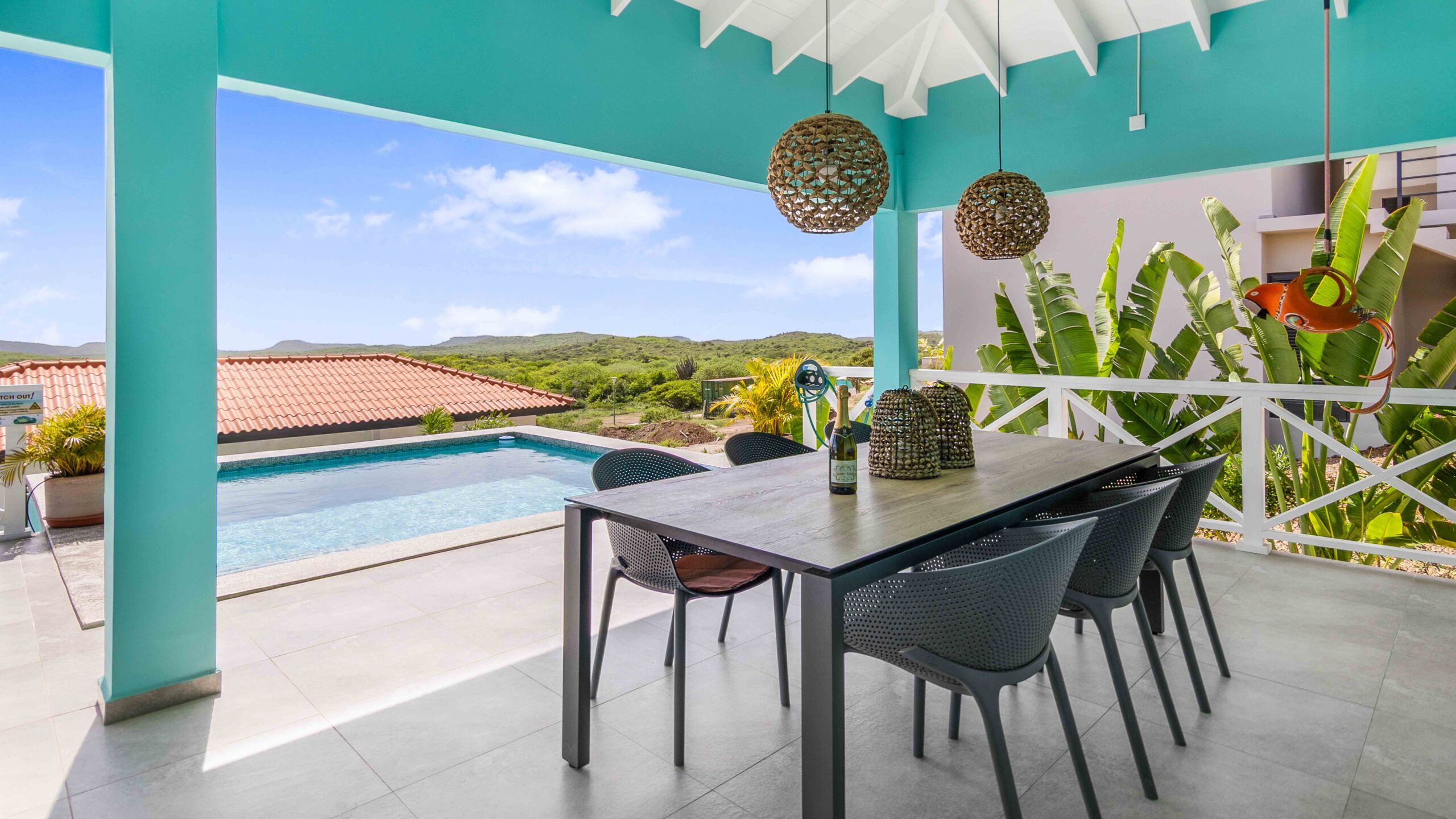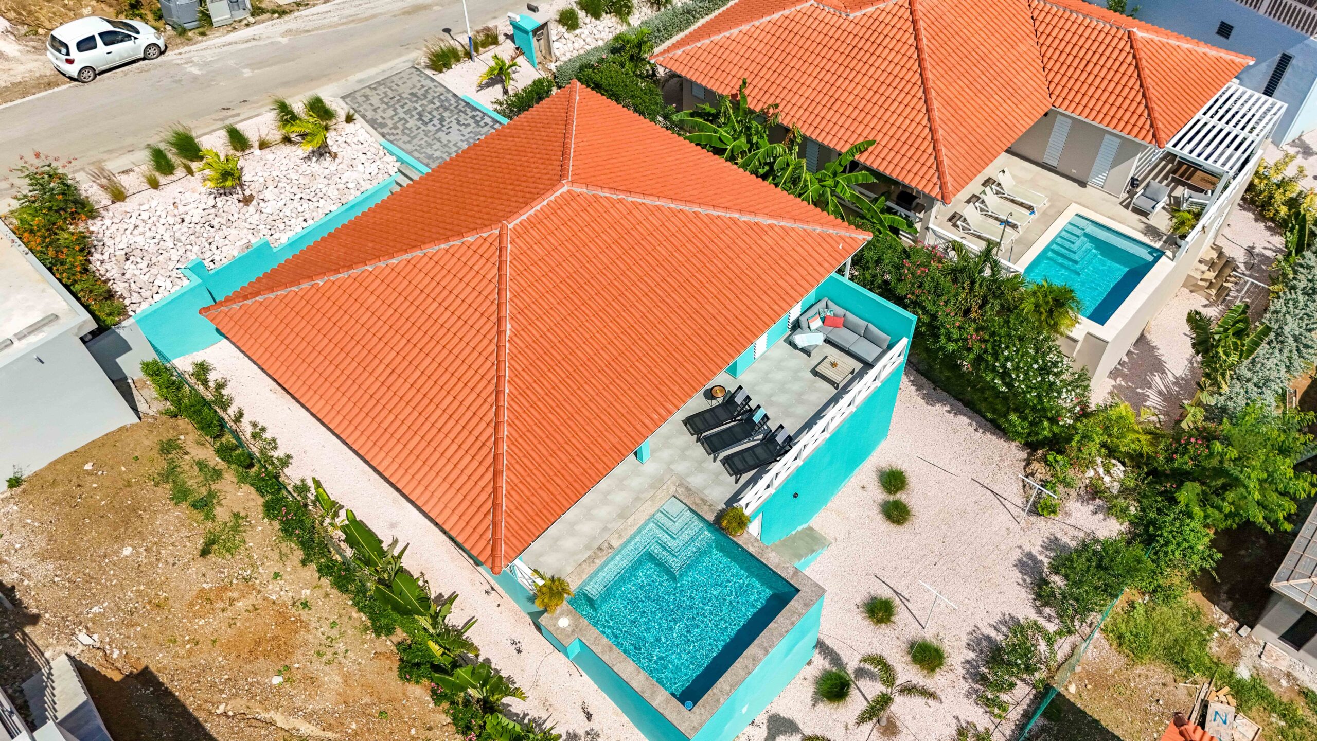 Deze luxe vakantiewoning, geschilderd in een frisse turquoise tint, biedt een onvergetelijk verblijf voor iedereen die wil genieten van comfort, natuur en de charme van het Caribische eiland Curaçao.