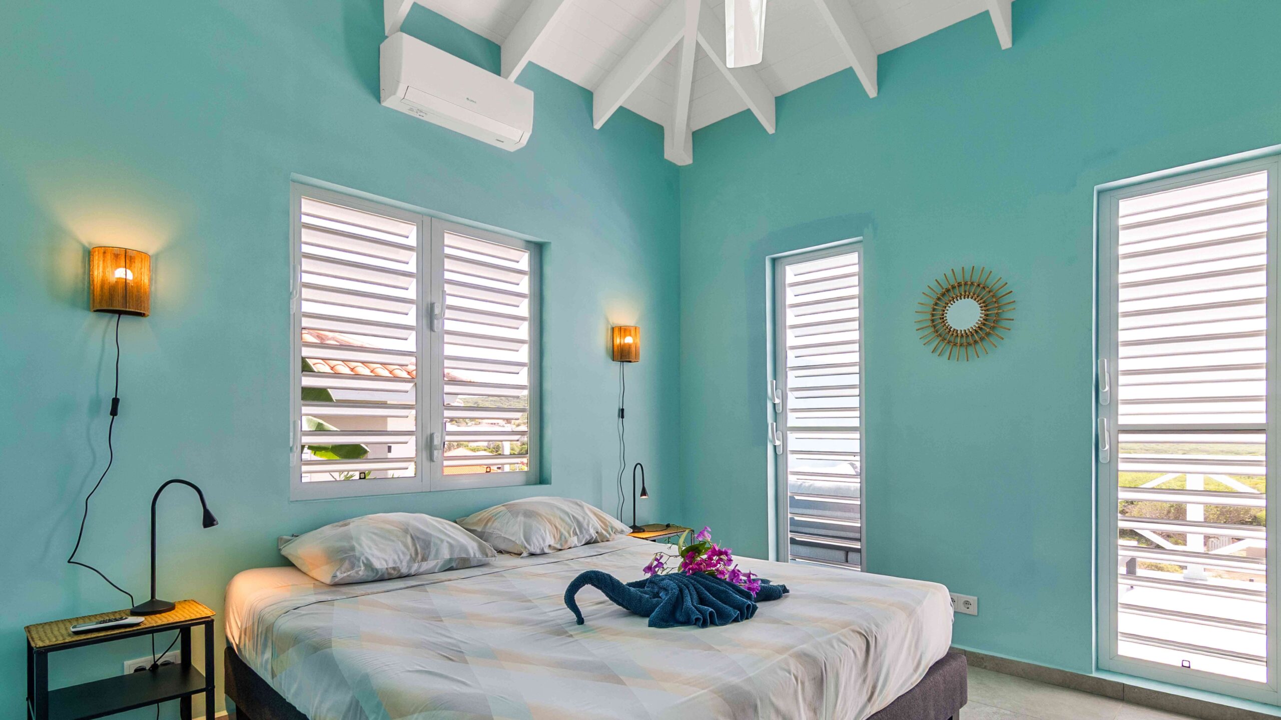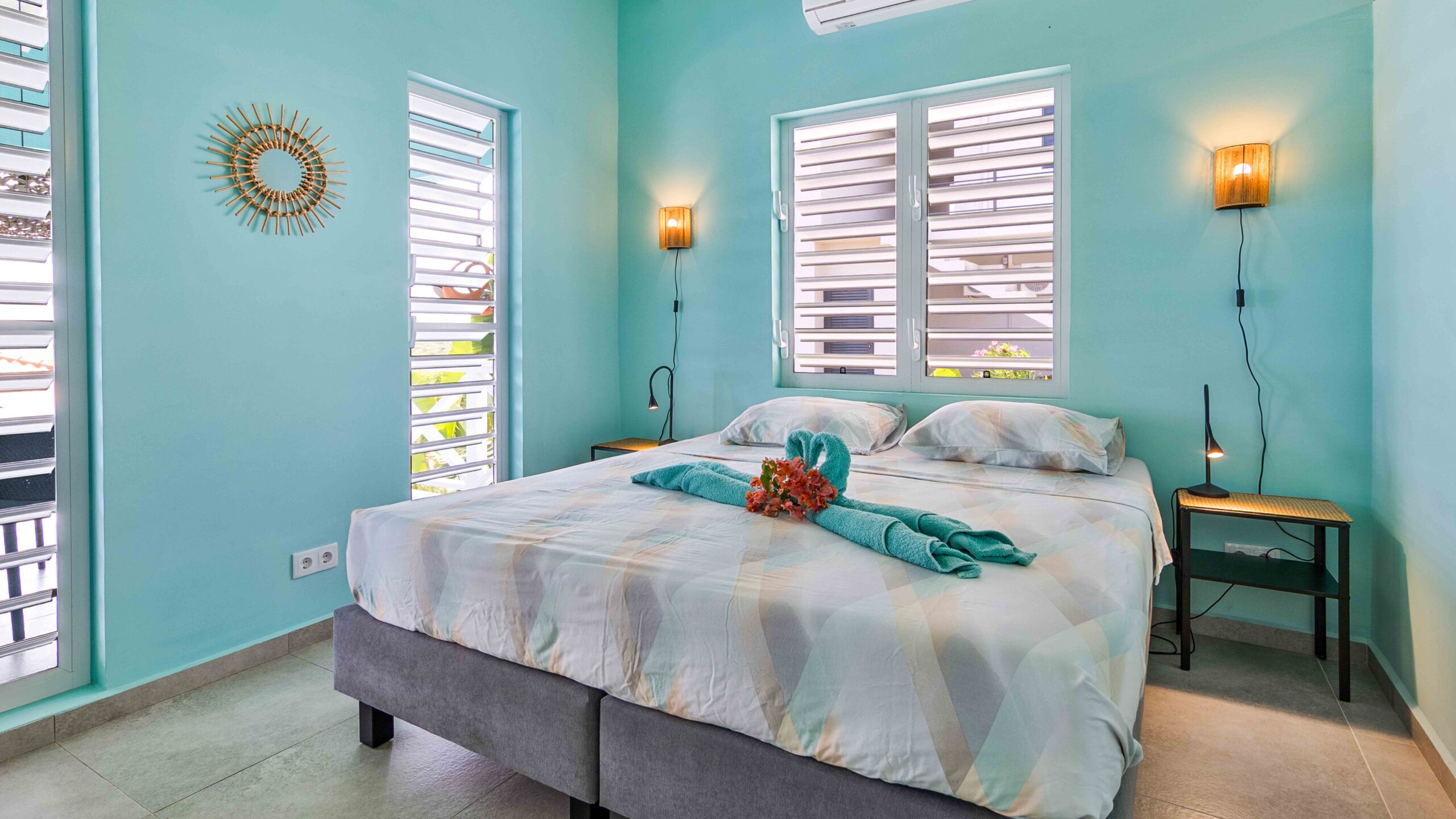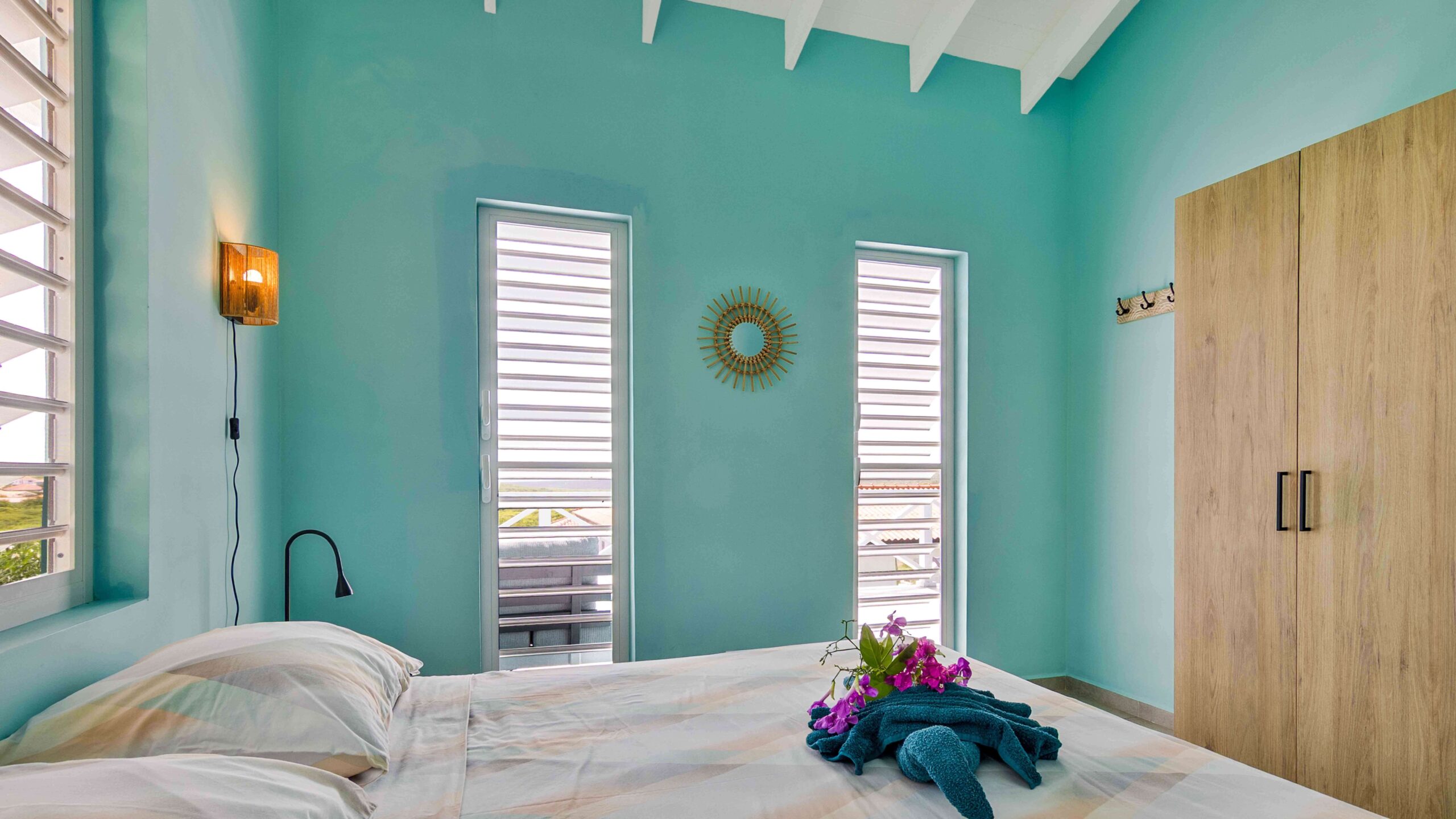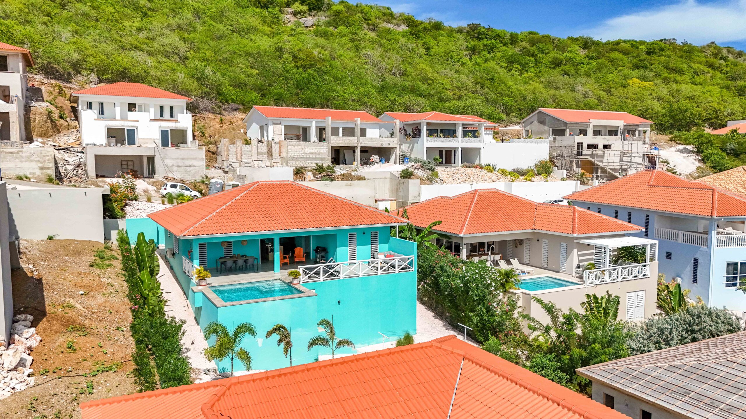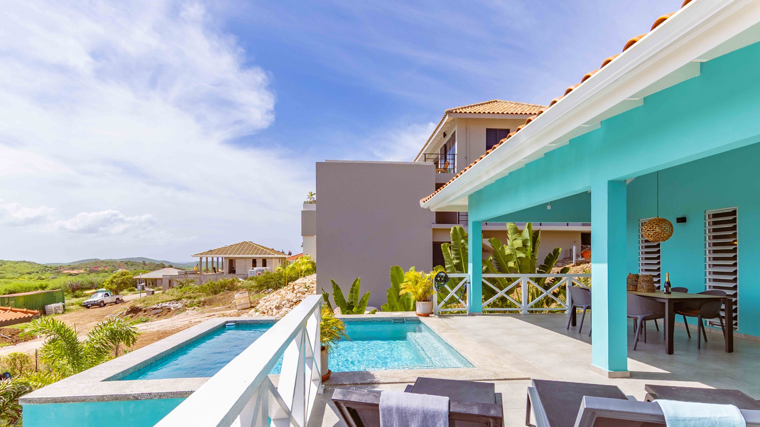 Deze luxe vakantiewoning, geschilderd in een frisse turquoise tint, biedt een onvergetelijk verblijf voor iedereen die wil genieten van comfort, natuur en de charme van het Caribische eiland Curaçao.