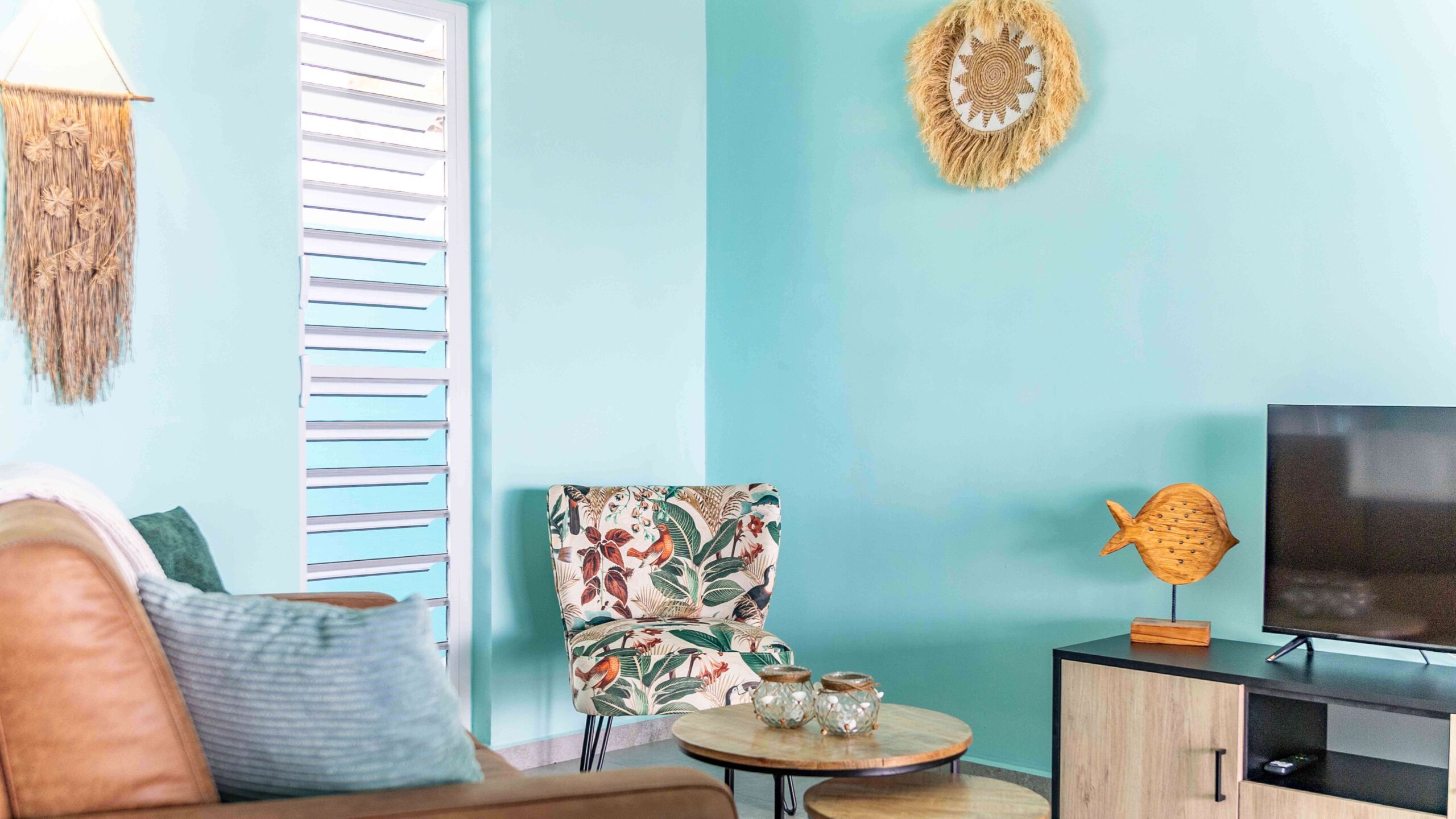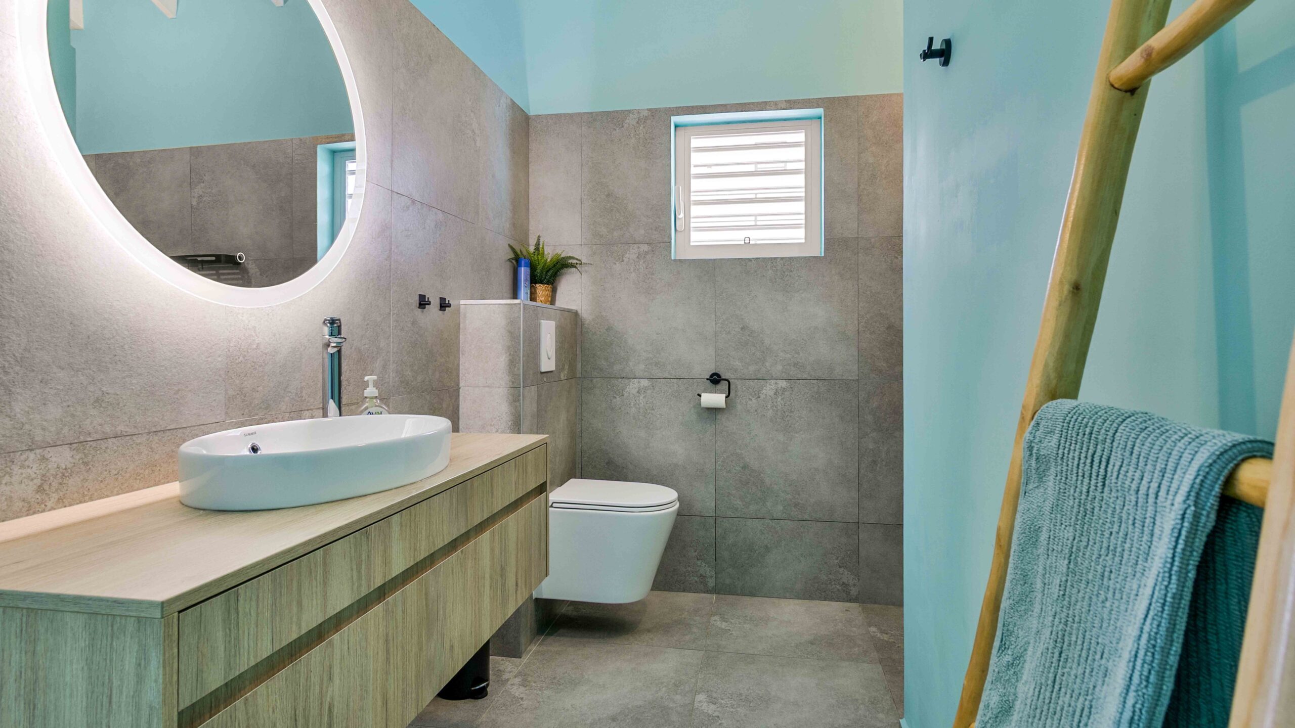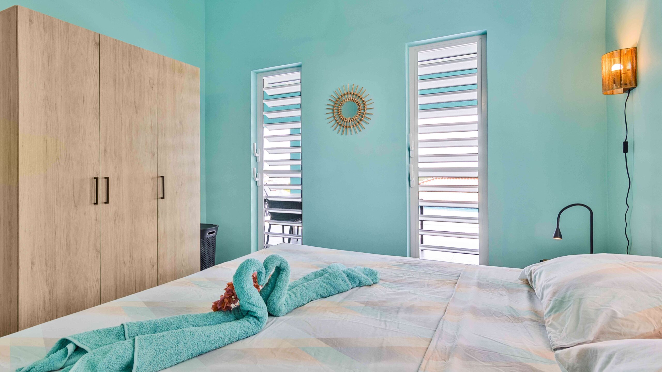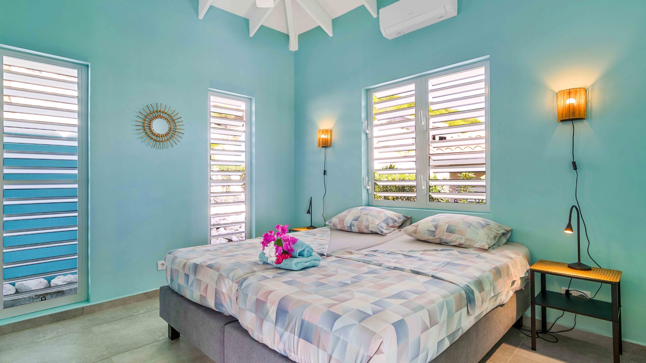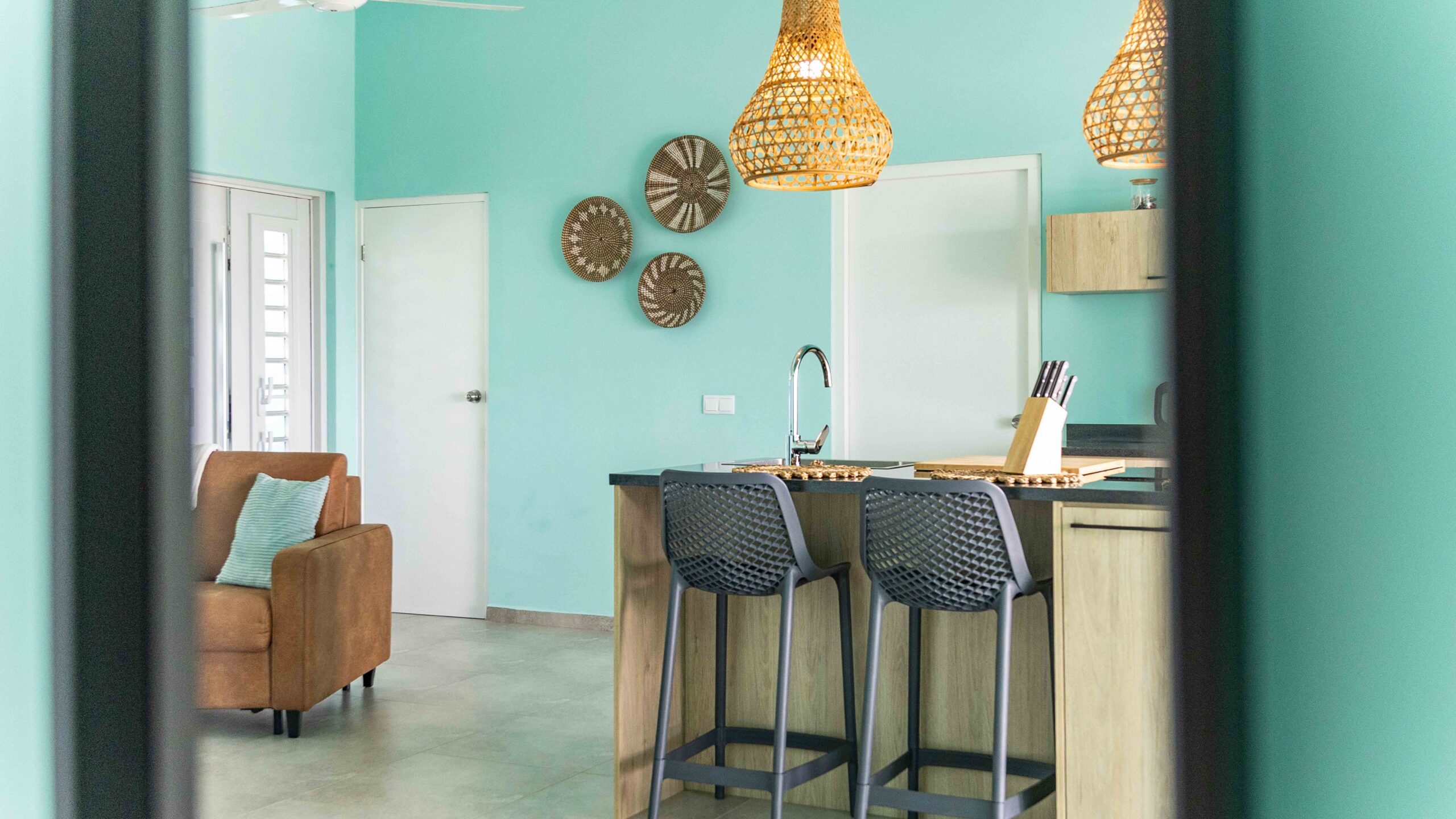 Deze luxe vakantiewoning, geschilderd in een frisse turquoise tint, biedt een onvergetelijk verblijf voor iedereen die wil genieten van comfort, natuur en de charme van het Caribische eiland Curaçao.